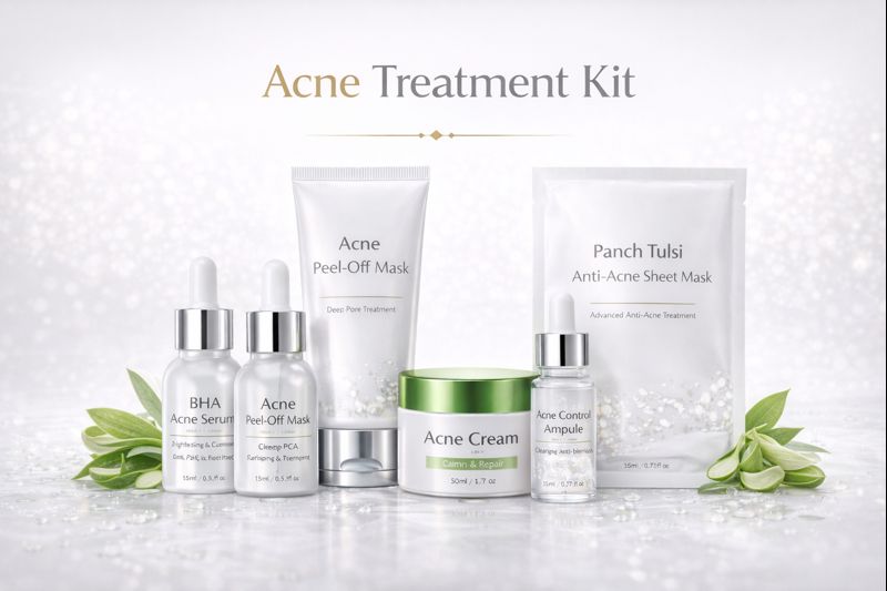 A clinic-grade acne management kit designed to control breakouts, reduce inflammation, and improve post-acne marks while maintaining skin balance.