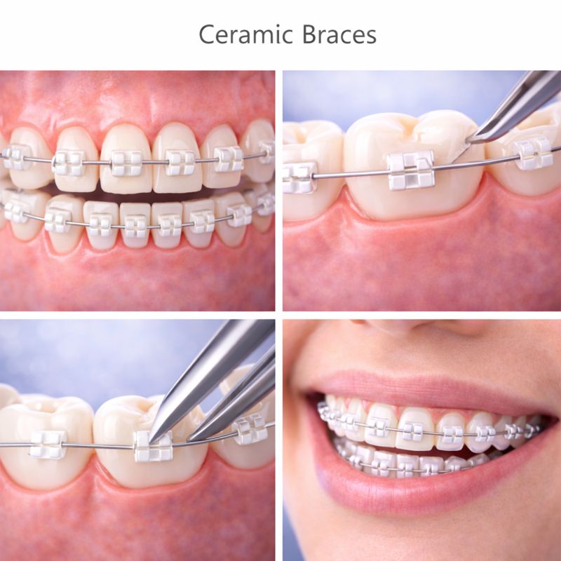 Tooth-colored ceramic braces providing effective alignment with enhanced aesthetics.