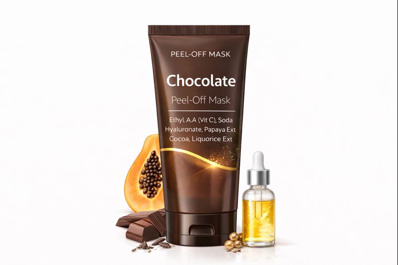 A luxurious chocolate-based peel-off mask enriched with Cocoa, Vitamin C, and Liquorice Extract to nourish, repair, and protect skin from oxidative stress.