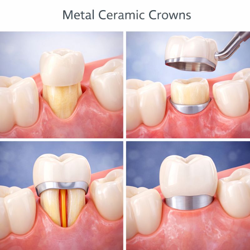 Durable crowns combining metal strength with ceramic aesthetics to restore damaged teeth effectively.