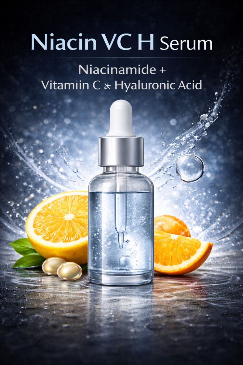 A balanced blend of Niacinamide, Vitamin C, and Hyaluronic Acid for pore refinement, hydration, and glow.